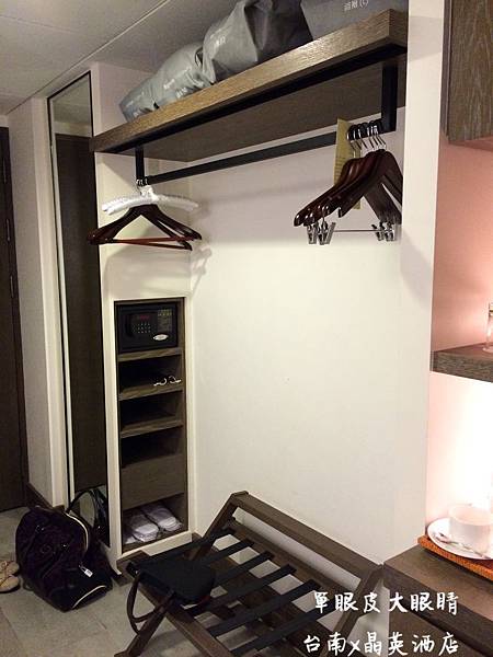 門口近來左手邊是一個無門的衣架空間,上面擺放著浴袍