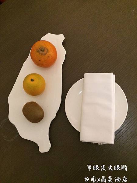還有飯店招待的迎賓水果,盤子是台灣的形狀耶