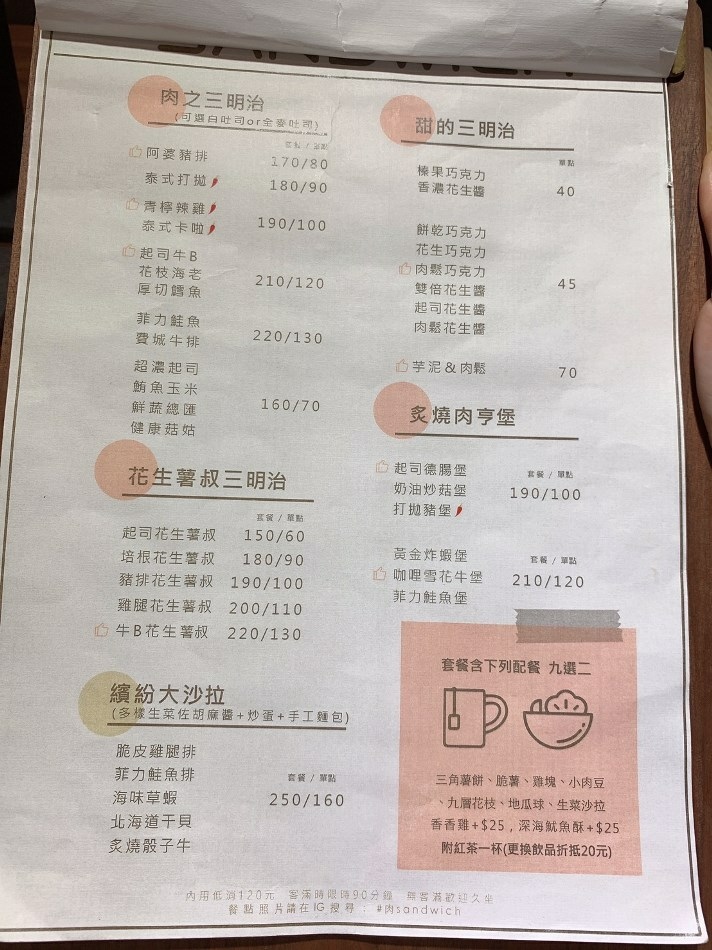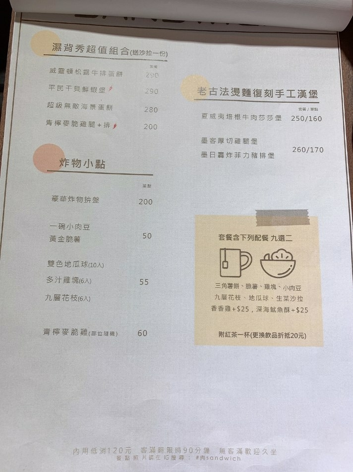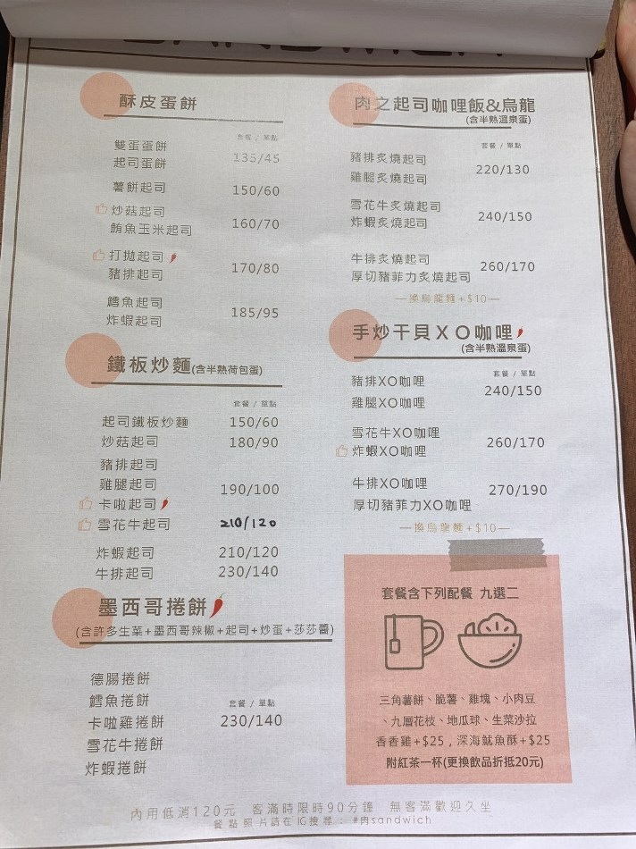 套餐一律都是單點+90元,配餐可以自己九選二 另附一杯紅茶(更換飲品折抵20元)